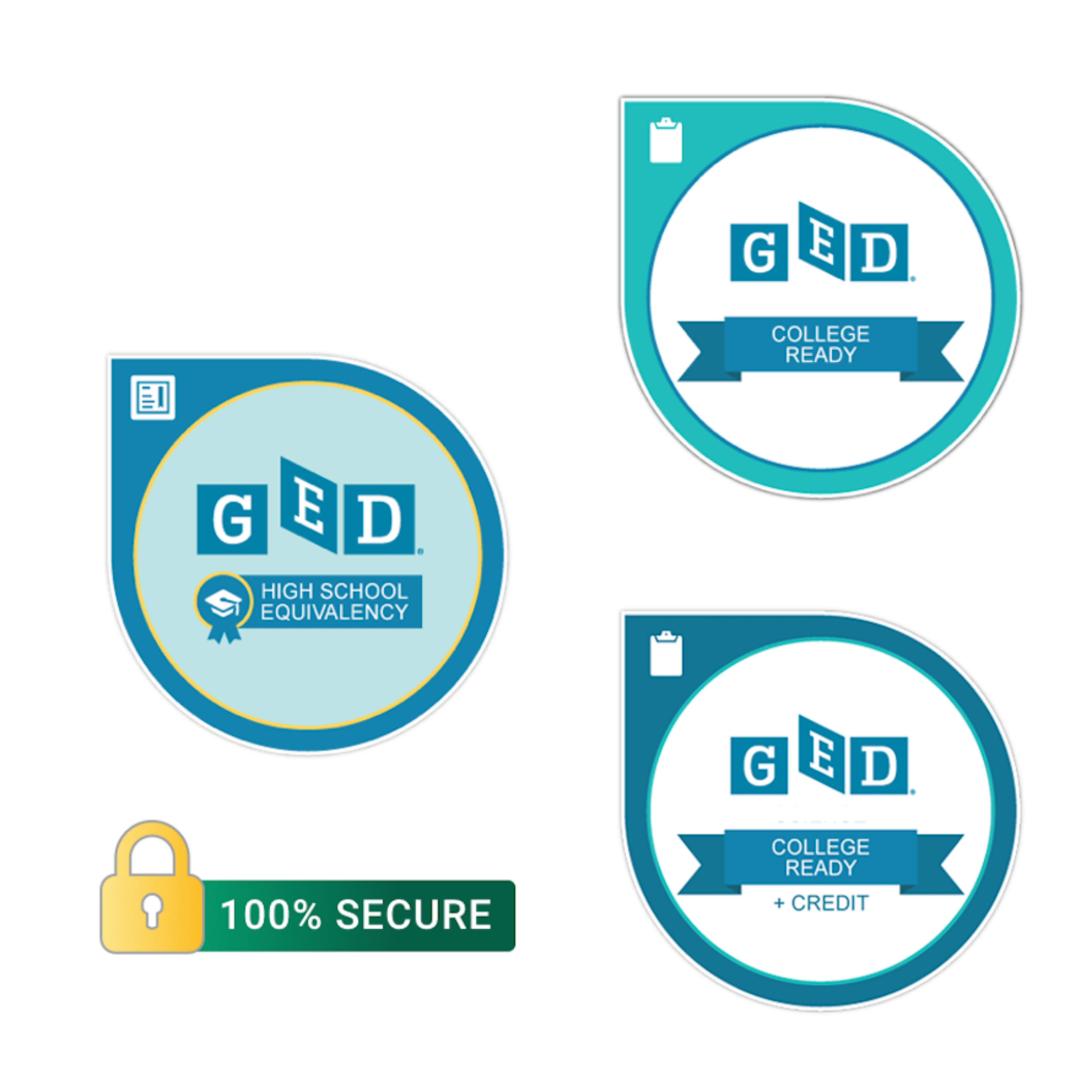 You can earn up to five GED badges — one for each subject you score ‘College Ready’ or College Ready + Credit’ and one for earning your GED credential after passing all four subjects.
